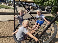 Det, at børnene er aldersopdelte, betyder ikke at små og store børn ikke har mulighed for at være sammen. Der er rig mulighed for alle børn for at færdes i hele huset og børnene er dagligt på legepladsen samtidig.